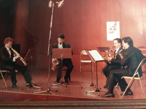 Vicente: En primer lugar me gustaría nombrar al Cuarteto Cems de Saxofones ya que fue el primer grupo del cual formé parte cuando todavía éramos estudiantes. Supuso una gran experiencia formativa desarrollando numerosos conciertos y grabaciones. Si tuviera que subrayar una vivencia con esta formación, destacaría la gira de conciertos que realizamos por Cataluña, organizada por el Ministerio de Asuntos Sociales.