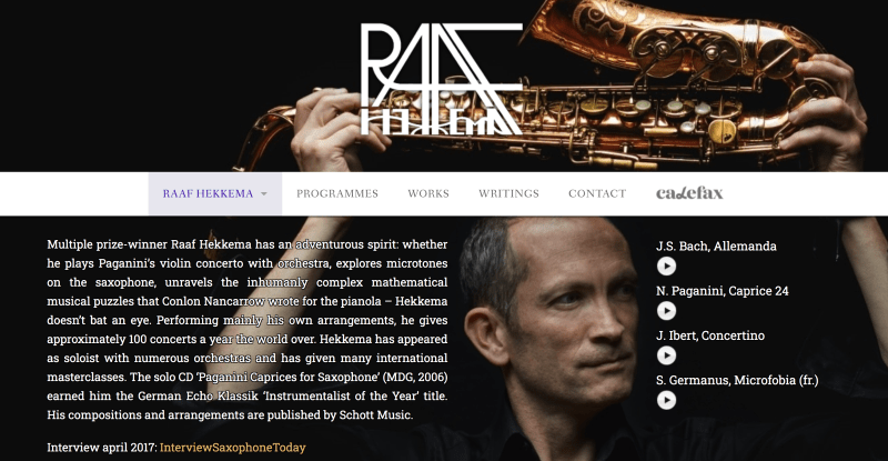 A musician who belongs to a worldwide reference group: the Calefax Reed Quintet. A reed quintet that will soon be 35 years old and that has offered nearly 1,700 concerts worldwide. (literal)