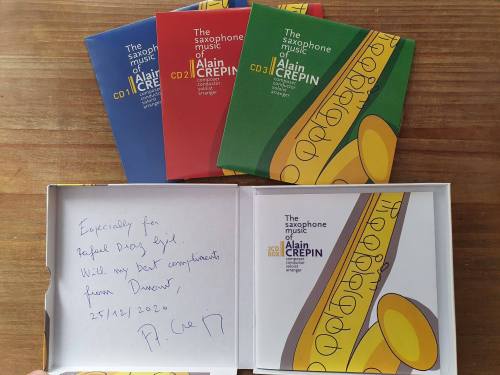 Otra manera de conocer al maestro es a través de este pack de 3 CD’s que te dan una visión global del trabajo de Alain Crepin. Es estas grabaciones el maestro toca, dirige, compone y hace arreglos. Y además hay música interpretada por alumnos de él, lo que también nos deja ver su faceta como docente en el Real Conservatorio de Bruselas.