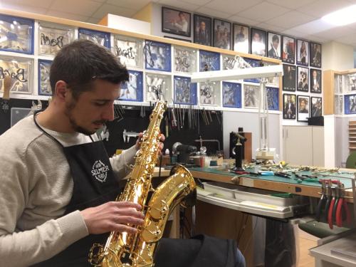 Durante todo este tiempo me he sentido afortunado de tener posibilidad de tener formación complementaria del más alto nivel, ya que desde Puntorep me han dado la posibilidad de viajar a la fábrica de Selmer, donde he continuado con mi formación de la mano de Sebastien Fontaine, Técnico especialista en clarinetes, David Lara y Martin, Técnicos especialistas en saxofones y Janik Ducase, Técnico en la fábrica Selmer.