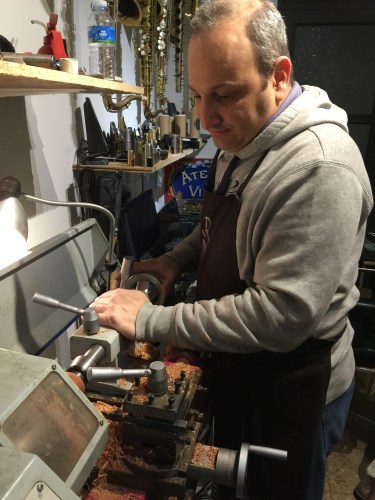 Diego: Recuerdo que por aquel entonces años 80 en Buenos Aires no era fácil encontrar un saxofón, con mi padre hicimos algunas visitas a ciertas “cuevas” de luthiers, aquel mundo oscuro olía especialmente atractivo, instrumentos colgados, luz tenue, olores metálicos, soldaduras, pegamentos, me abrieron los ojos casi más que el propio instrumento. He tenido la suerte de tener un padre muy «manitas», siempre rodeado de maquinarias y herramientas, en casa un taller enorme donde se sacaban de la cabeza muchas ideas y se transformaban en algo que sirviera para resolver un problema. Aunque mi primer instrumento finalmente fue un saxo alto nuevo, siempre quedaron en mi cabeza aquellos sitios donde esos artesanos bohemios volvían a la vida a los instrumentos. En fin resumiendo, la primera inversión propia que hice cuando ya estaba a punto de acabar el conservatorio fue un saxo alto Buescher Aristocrat de los años 40-45 más o menos, para esa época ya era amante de los “vintage” así que lo primero que hice fue llevarlo para que me hicieran una restauración, lo quería impecable, no quería fallos, ni restos de malas reparaciones… pero fue un chasco total, decepción, impotencia y un dolor profundo me vino a la cabeza cuando me devolvieron el instrumento peor de lo que estaba… Así empezó todo, nunca más permitiría que alguien destrozara una parte de la historia, de la música y del arte. Aquel instrumento decidí quitármelo de la vista pronto. Pocos años después tuve la oportunidad de empezar a tocar el clarinete en alguna banda y por ahí fue que compré un instrumento un poco viejo para poner a punto. Así fue cómo comenzaron mis andanzas, posteriormente trabajando con algunos luthiers más experimentados, fui construyendo mi experiencia y conocimientos.
