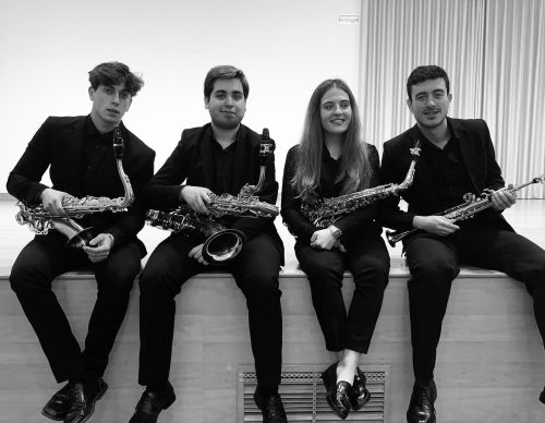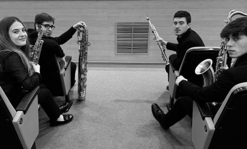 De alguna manera, y siempre aconsejado desde el aula de saxofón, realizamos clases de formación en otras áreas lejos de la del saxofón para completar nuestra formación, teatro, literatura, composición musical, análisis de obras de arte, etc., pero como debemos dar una respuesta a tu pregunta, actualmente, responder, resulta para nosotros bastante complejo debido a las diferencias de edad que hay en el grupo. Cristina y Andrés acaban de comenzar sus estudios superiores y todavía no tienen muy claro qué les deparará el futuro. Adrián, actualmente en segundo curso, se marcha el año que viene de ERASMUS a Oslo, a la Norwegian Academy of Music. Probablemente, su máster vaya en esa dirección. Por último, José finaliza los estudios superiores de música y el curso que viene realizará el máster de interpretación e investigación en el CSMA.