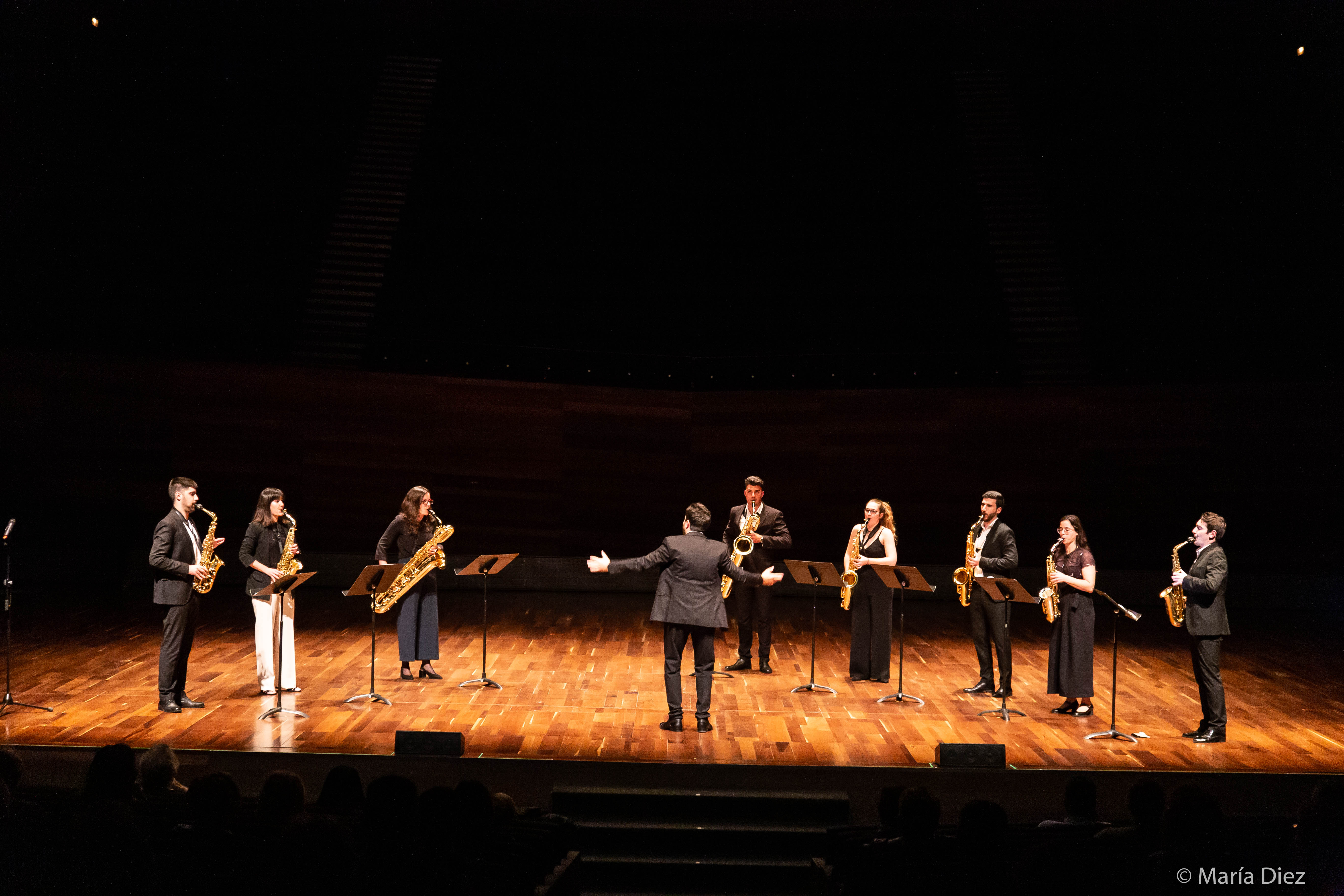 Inés: Empecé a estudiar música cuando tenía 7 años en la escuela de música “Gratiniano Martínez” de Villacañas (Toledo). Allí fue donde conocí a mi profesor de saxofón Javier Sánchez y con quien me fui a Madrid a continuar mis estudios de Grado medio en el CIEM “Federico Moreno Torroba”. Este centro ofrecía cursar la E.S.O y el Bachillerato en el mismo edificio que estudiabas el Grado medio y, a pesar del gran esfuerzo que suponía para mí y mi familia dejar mi pueblo (Lillo) con 12 años, valoramos que era una gran oportunidad para poder compaginar los estudios de Conservatorio y el Instituto. Fue una etapa de mi vida que recuerdo con mucho cariño porque allí conocí a gente muy importante para mí a día de hoy, y que, además me ayudó mucho a crecer en todos los ámbitos.