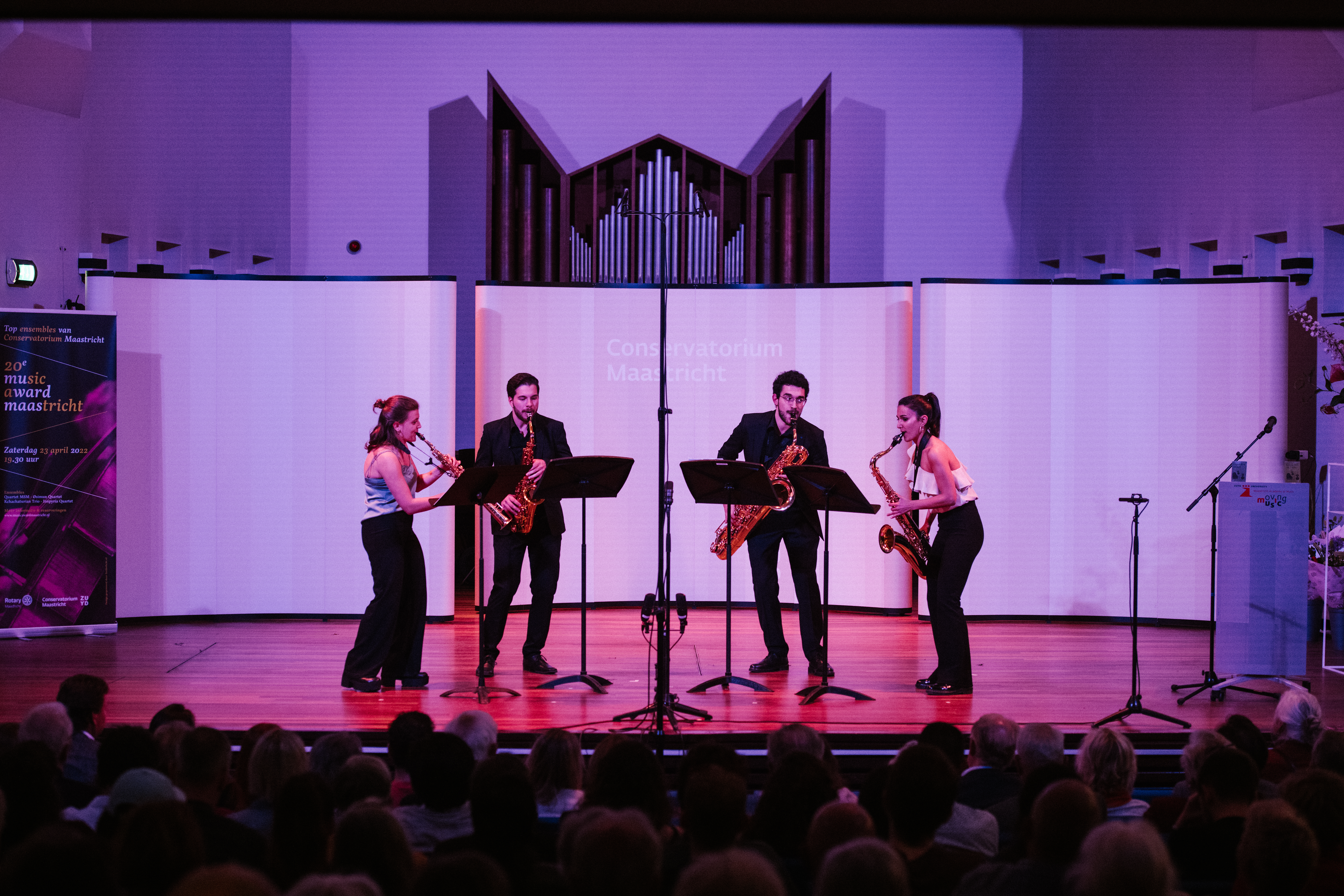 Øsimun quartet es un cuarteto de saxos que formé con otros tres compañeros del aula en septiembre y desde que empezamos a tocar juntos no hemos parado. Afortunadamente hemos podido hacer muchos conciertos en salas como Muziekgebouw de Eindhoven o el Museum aan het Vrijthof de Maastricht. Además, el conservatorio organiza cada año varios eventos como el Chamber music festival, donde estuvimos cuatro días dando clase con los músicos de Oberon Trio y el clarinetista Martin Spangenberg. Dicho festival concluyó con un concierto realizado con el resto de grupos participantes en Parkstad Limbug Theaters, Heerlen. Otro de los grandes eventos fue el Music Awards Maastricht donde tuvimos la suerte de participar como finalistas del concurso junto a otros tres grupos de cámara. Fue muy gratificante formar parte de estos dos eventos, sobre todo por la gran audiencia que generan.