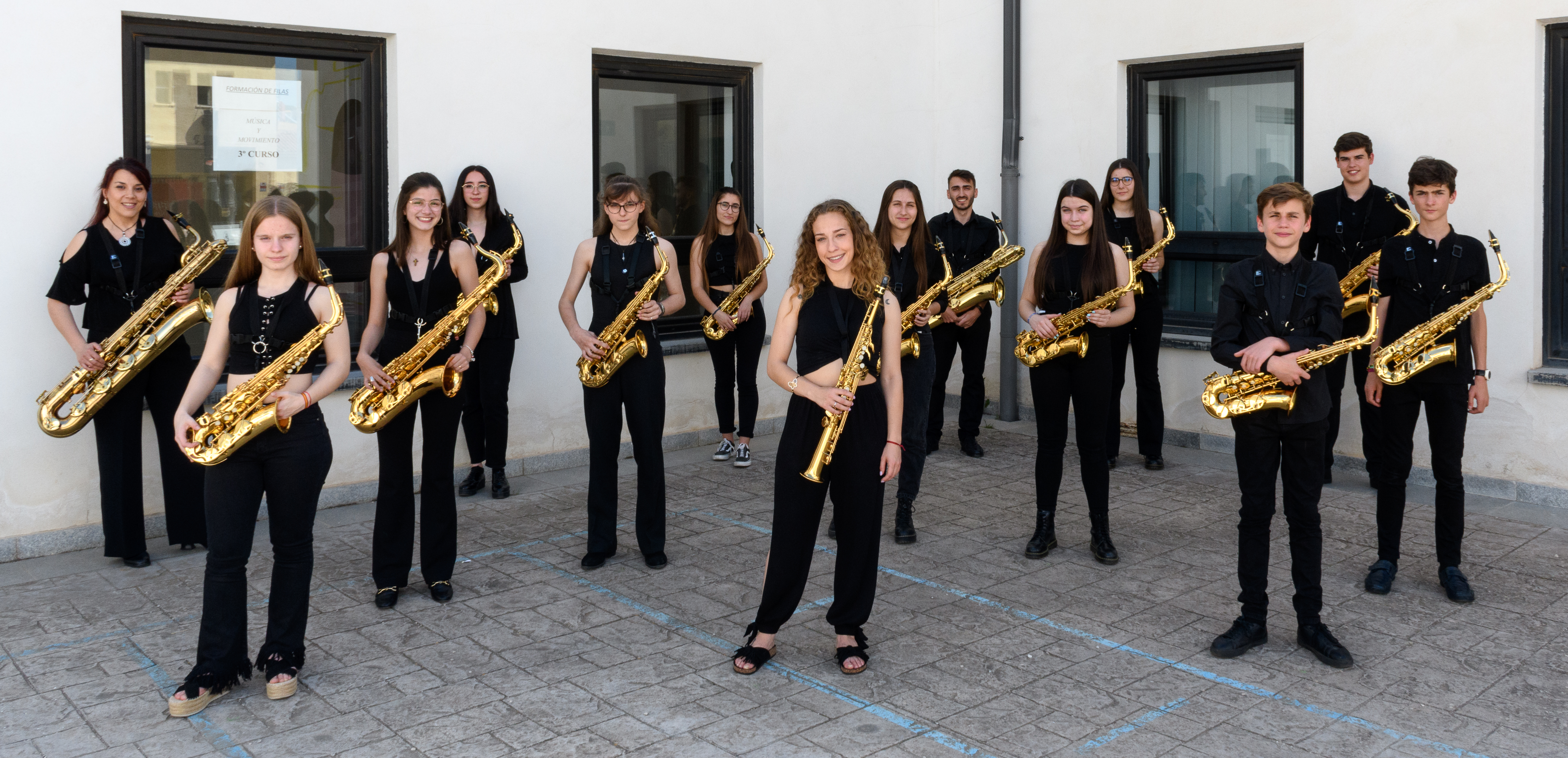 Miriam: ¿Qué voy a decir de mi centro de trabajo en el que estoy acompañada de excelentes compañeros y que reconozco tener la fortuna de dar clase a un gran número de alumnos con una gran implicación, tanto ellos como sus familias? Dije hace unos años que me sentía muy afortunada por poder enseñar a disfrutar haciendo música con el saxofón en mi Cuenca, una ciudad pequeña pero preciosa. Es cierto que todos los años no han sido buenos, y con esto me refiero a la crisis del 2008 que nos produjo cierta intranquilidad laboral, pero gracias a nuestro trabajo y al que realizaron los concejales del ayuntamiento que ocuparon esa legislatura, la escuela no solo mantuvo sino que incrementó el número de alumnos, motivo que sirvió para generar mayor confianza en nosotros. En 2010 se crean los ensembles instrumentales como asignatura, y por mi vinculación con el Sax Ensemble, quería que mis alumnos pudieran participar en Jornadas, Congresos, etc. para que vivieran en primera persona el ambiente musical intentando contagiarles la ilusión por realizar unos estudios profesionales y que, con el tiempo, se convirtieran en estudios superiores, tratando de crearles unas perspectivas de futuro. Sin duda, los viajes, la interacción entre ellos y sus padres conmigo, favorecieron que el grupo creciera en nivel y en componentes. Además, los alumnos que crearon el grupo saben que pueden volver cuando sus estudios universitarios les permiten porque siempre formarán parte de esta familia.