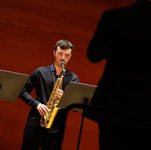 Izan: En 2021, en el Encontro Galego do Saxofón en Vila de Cruces, conozco a Xabier Casal personalmente en una clase con la Sonata de Muczynski. Tras ese breve encuentro, durante el año posterior fui dando clases con él en el Aula Galega do Saxofón. Se podría decir que a pesar de no conocerme de la mejor manera, siempre me demostró que confiaba en mí, siendo una gran razón que luego no podría obviar. Era un profesor joven y un gran músico en activo; además, me llegaron buenas referencias acerca de su trabajo que pude comprobar en esas clases en Ribeira, el mismo año en el que él se estrenaba de profesor en el Conservatori Superior de Música de les Illes Balears (CSMIB).